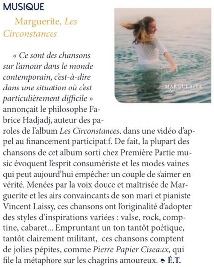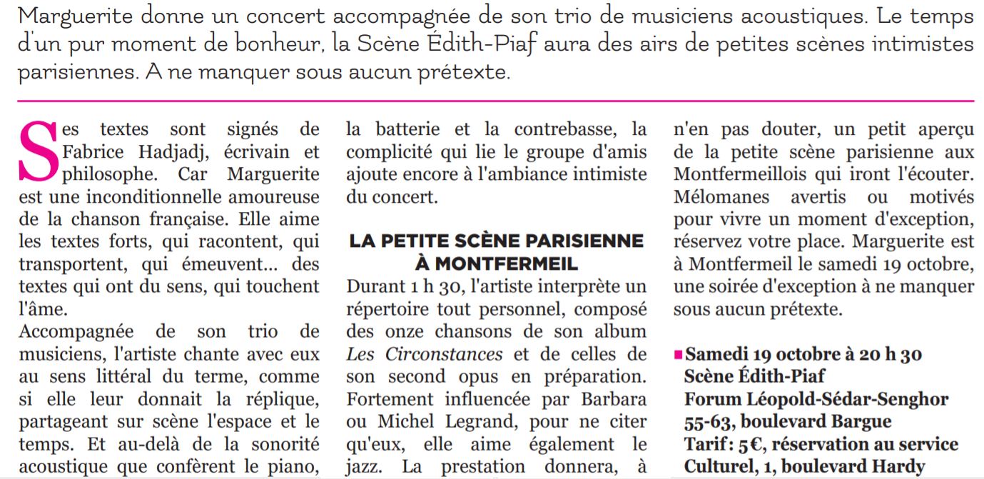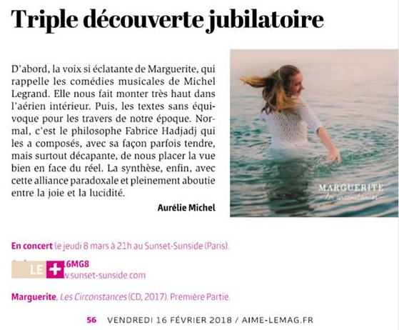 Jeunesse, spontanéité, lucidité, optimisme, ouverture d’esprit font de Marguerite une artiste qui méritait de figurer, cette semaine, en bonne place à l’occasion de cet Awik-End Music (suite sur le site d’AWI)